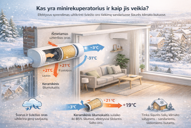 Minirekuperatoriai dažnai naudojami butuose ir renovuotuose namuose, tačiau daugeliui kyla klausimas – ar jie veikia esant labai žemai temperatūrai. Aptariame, kaip šie įrenginiai veikia žiemą ir į ką svarbu atkreipti dėmesį šalto klimato sąlygomis