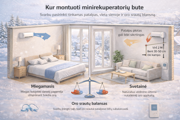 Tinkama minirekuperatoriaus montavimo vieta lemia, kaip efektyviai veiks vėdinimo sistema. Šiame straipsnyje paaiškiname, kuriose patalpose dažniausiai montuojami minirekuperatoriai ir kokie veiksniai svarbūs užtikrinant gerą oro cirkuliaciją